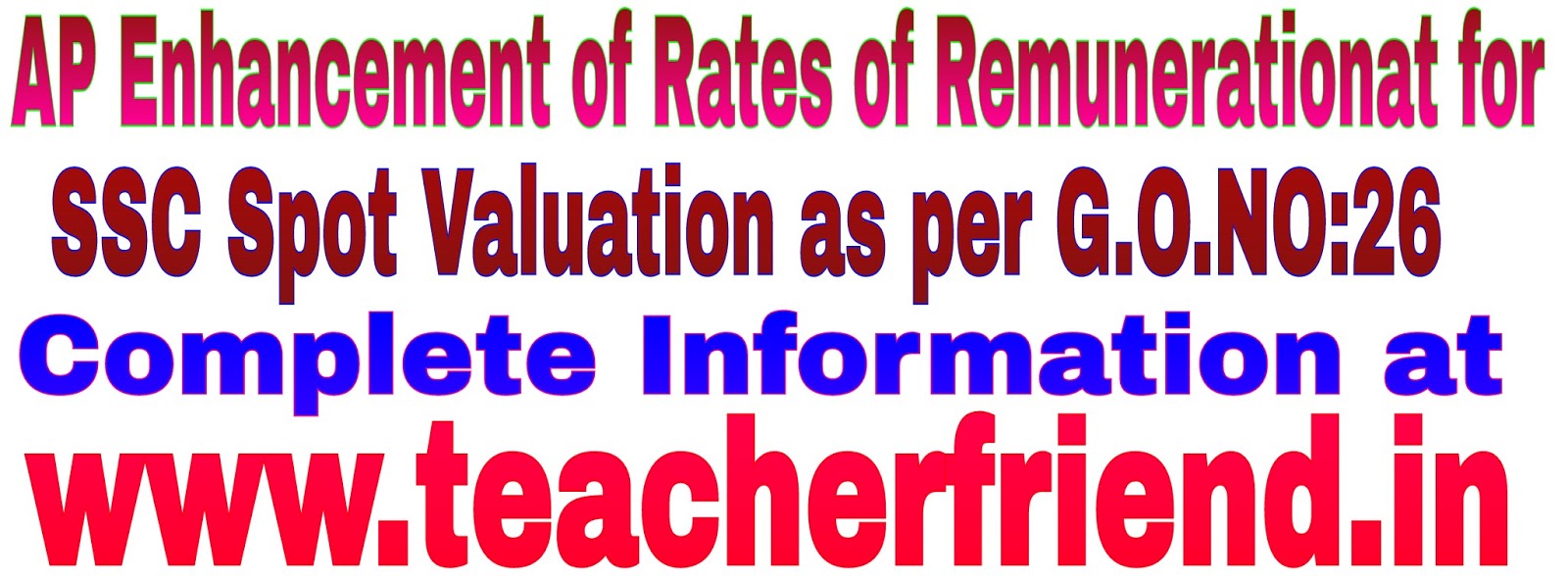 Andhra Pradesh Enhancement of Rates of Remuneration attending for SSC Spot Valuation duties and contingency charges as per G.O.NO:26 , AP Enhancement of Rates of Remunerationat for SSC Spot Valuation as per G.O.NO:26 , AP SSC Spot Valuation Enhancement of Rates of Remuneration as per G.O.NO:26.